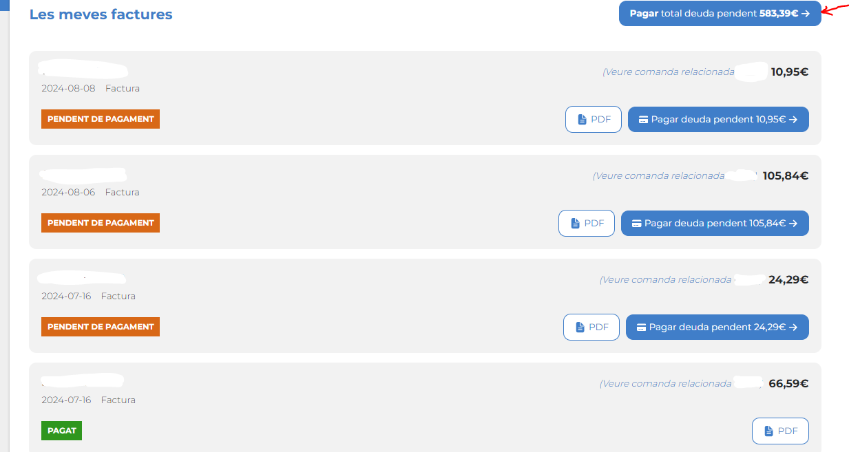 Allà podràs triar entre realitzar un pagament únic per a totes les comandes o bé liquidar-les per separat, segons et convingui.