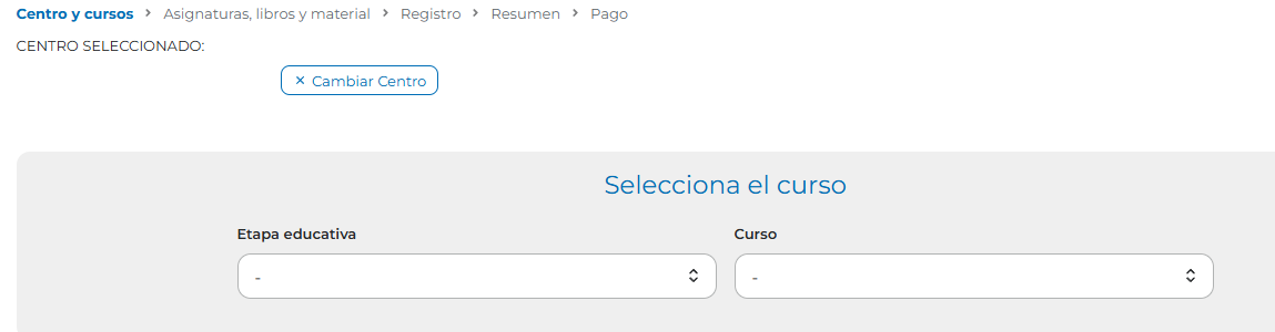 2. Escogemos la etapa educativa, el curso, materiales, etc..