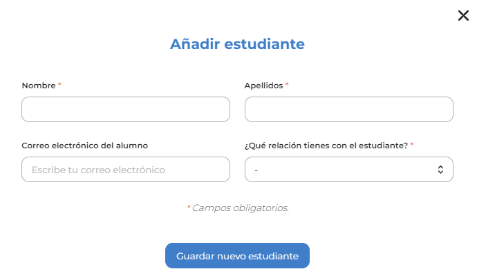 3. Una vez hemos escogido los materiales necesarios, llegaremos a la pestaña "Datos" donde será necesario escoger al alumno y también, estará la opción de añadirlo.