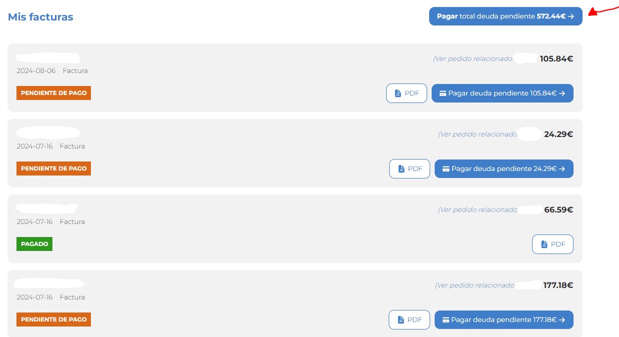 Desde allí podrás elegir entre realizar un único pago para todos los pedidos o abonarlos por separado, según prefieras.